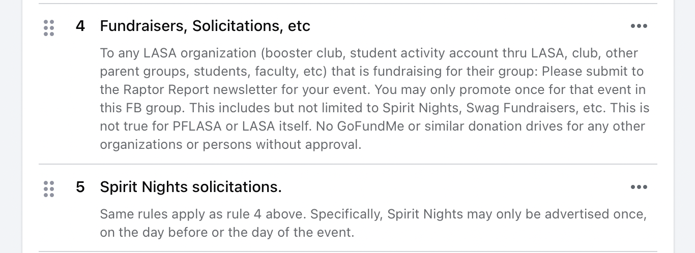 - On FB, ONCE PER EVENT, as per our group rules 4 and 5 (see below). Posts that contain links to fundraisers in the body of the text are automatically flagged as ‘spam’ by FB. Please post relevant links in the comments.